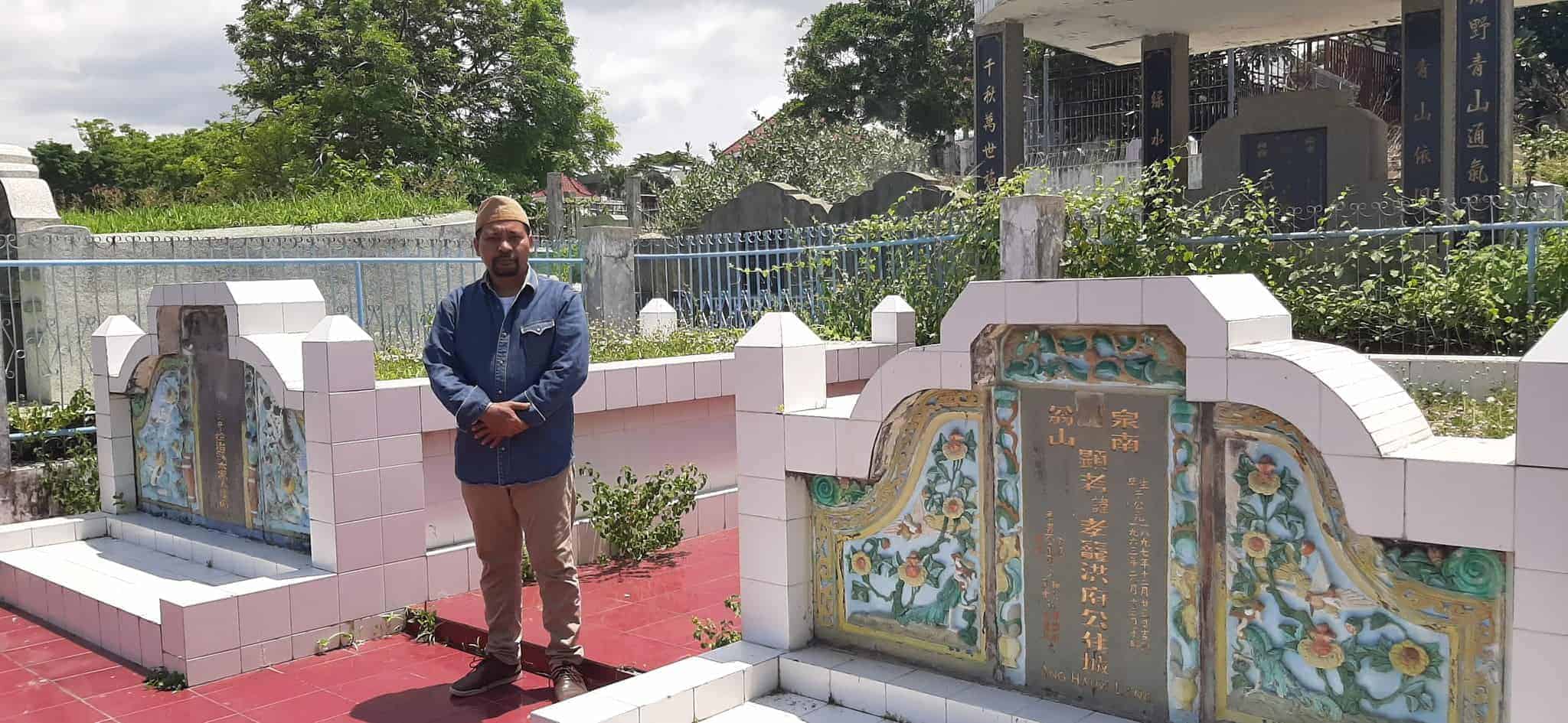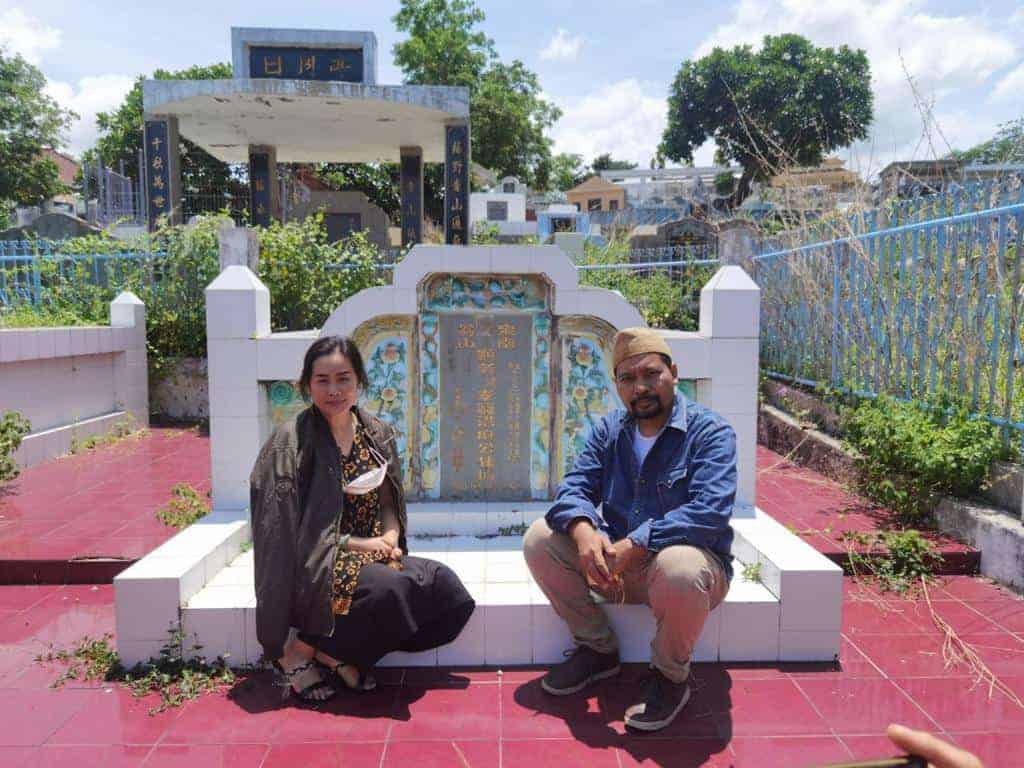 Mengunjungi Makam Ang Hauw Lang bersama Kak Melly (cicit Ang Hauw Lang, depan makam) di Kupang.