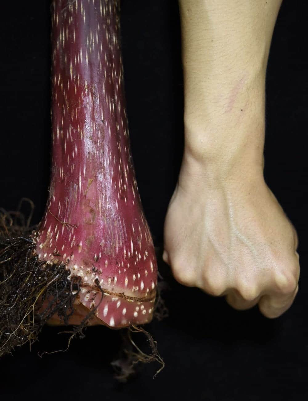 Setelah dikeringkan di herbarium dan dipasang pada papan besar, benda uji yang telah dikeringkan diukur tinggi 3,1 m dan lebar 2,5 m.